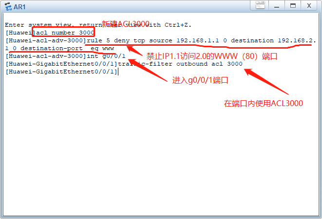 当数据包从接口经过时,由于接口启用了acl, 此时路由器会对报文进行检查,然后做出相应的处理。