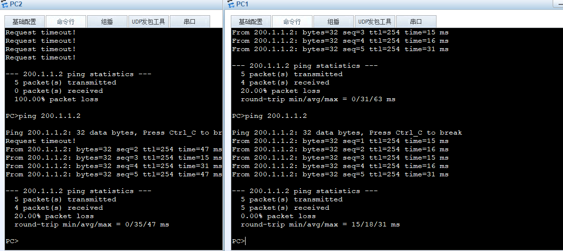 这样两个PC机就都可以访问外网了,这就是动态NAT,但是需要公网的地址池,多少个私网IP,公网地址池就需要多少个公网的IP。