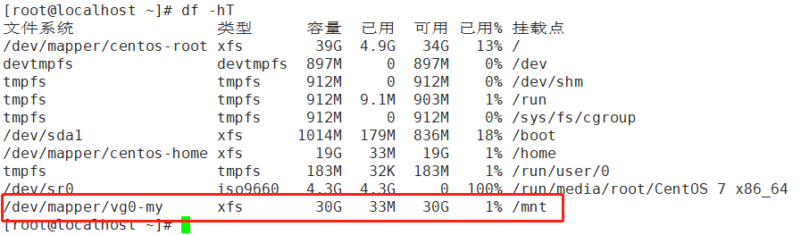 这就创建好了,用两块硬盘创建了一个vg的卷组,然后从这个卷组中取出10G的容量进行挂载,使用。