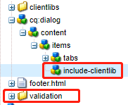 只要这样做就能将他们绑定在一起了,当然如果你想要全局的直接在validation节点下用cq.authoring.dialog即可