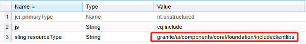 然后再在组件下某个位置创建一个include-clientlib节点,注意js和sling属性