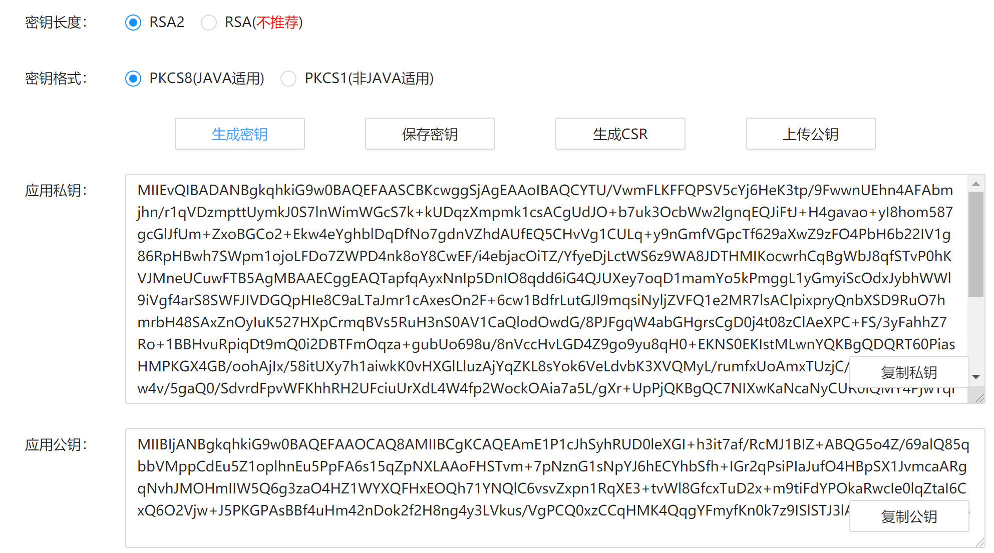 点击生成密钥,再下载一下密钥,这儿的公钥要放在下一个网站里生成一个支付宝的公钥