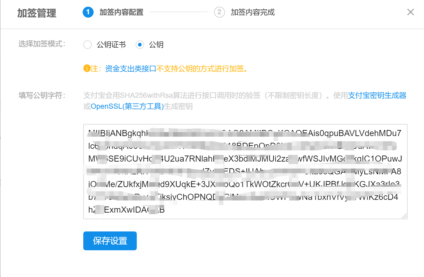 在下面放入之前的公钥,就会提供一个支付宝公钥
