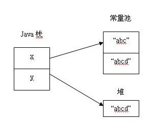 注意:new 出来的堆中的对象也是指向常量池的,存的是地址