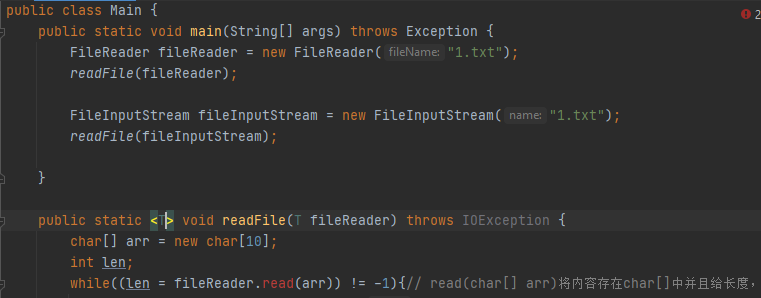 当我想让FileReader和FileInputStream类型都作为一个方法的形参时,就得用泛型方法了吧?