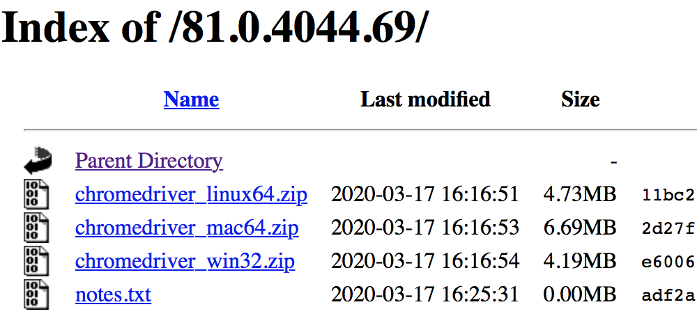 ChromeDriver下载地址:http://chromedriver.storage.googleapis.com/index.html