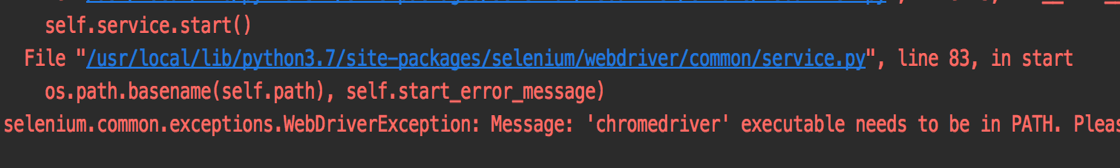 4、配置ChromeDriver环境配置(如不提前配置,运行代码时应该会报错如图;不想配置环境,如报错也可以在代码中自动手动添加ChromeDriver路径)