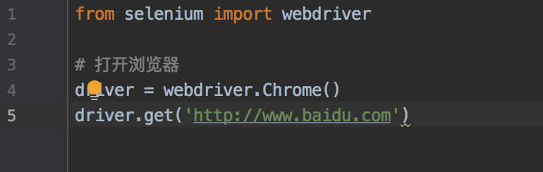 5、编写脚本启动Chrome浏览器,运行脚本,可看到浏览器启动并自动打开百度页面