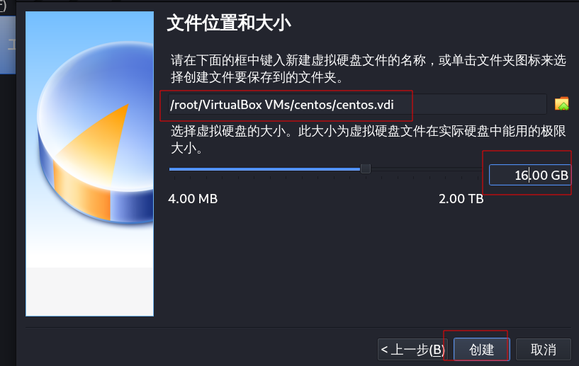 选择文件保存位置,分配虚拟机大小为16G。点击创建。