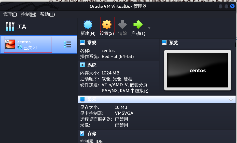 创建完成后,选择该虚拟机,点击设置。