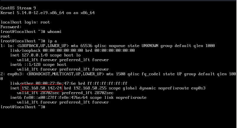 执行ip a命令可查看当前虚拟机IP。