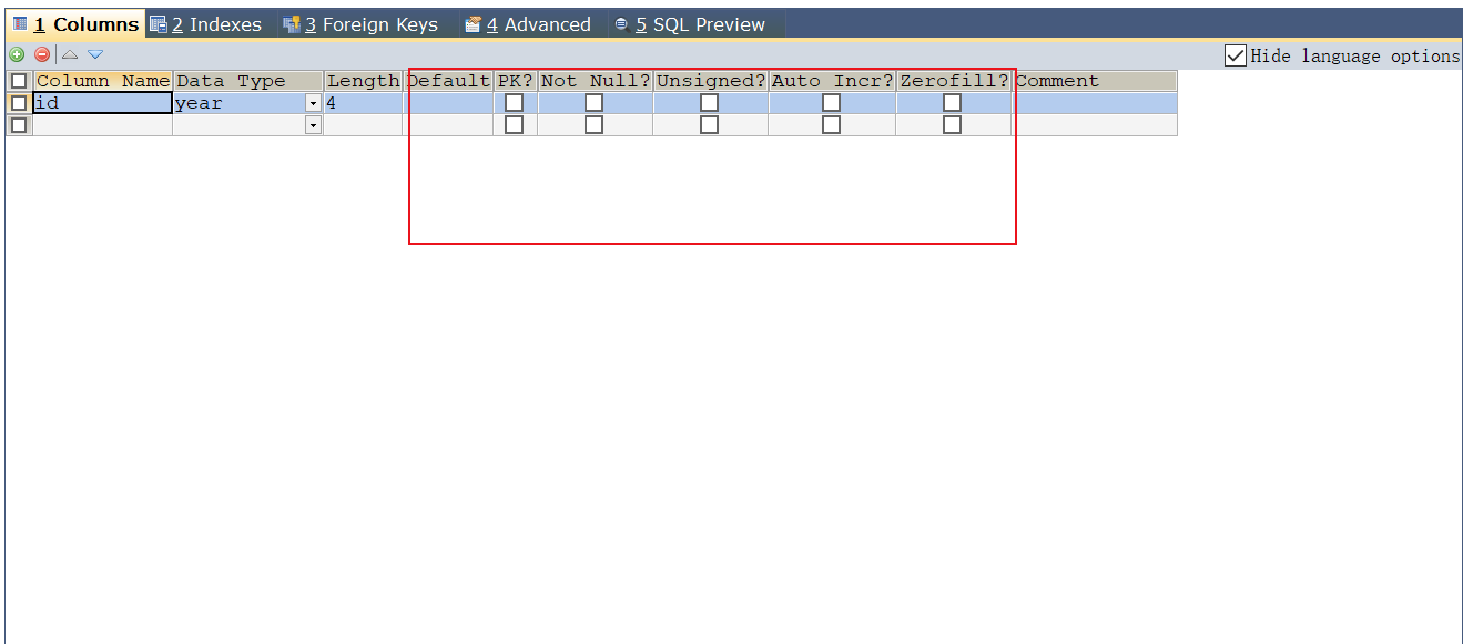 -- 若勾选PK设置为主键,则自动勾选Not Null