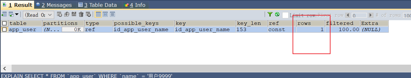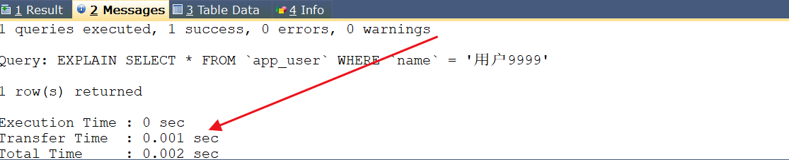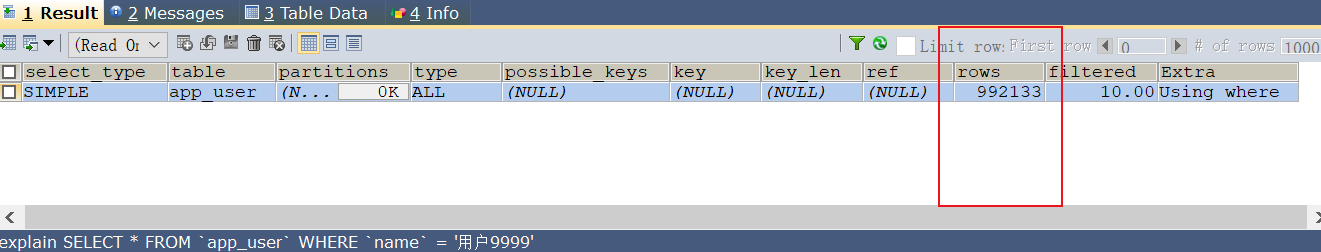EXPLAIN SELECT * FROM `app_user` WHERE `name` = '用户9999';