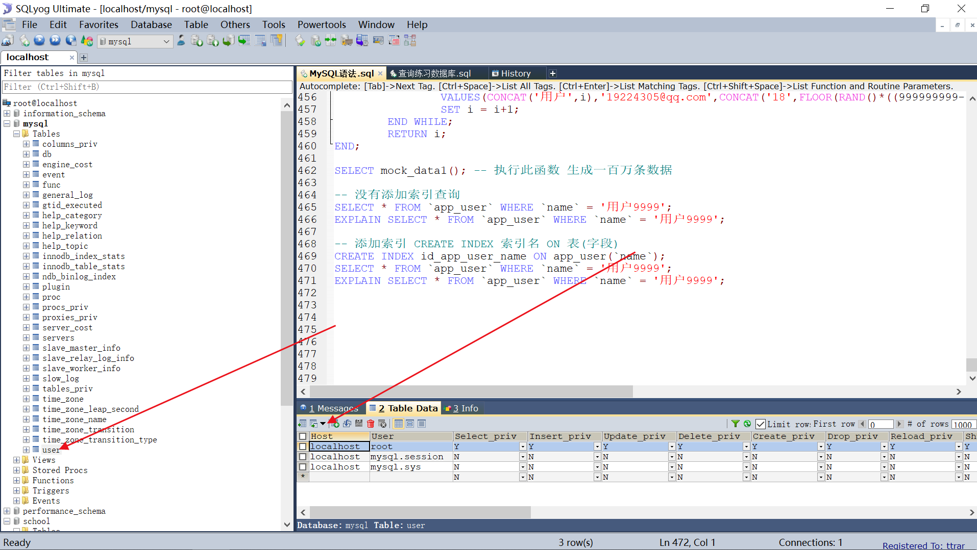 EXPLAIN select * from user -- 查看SQL执行的状况EXPLAIN