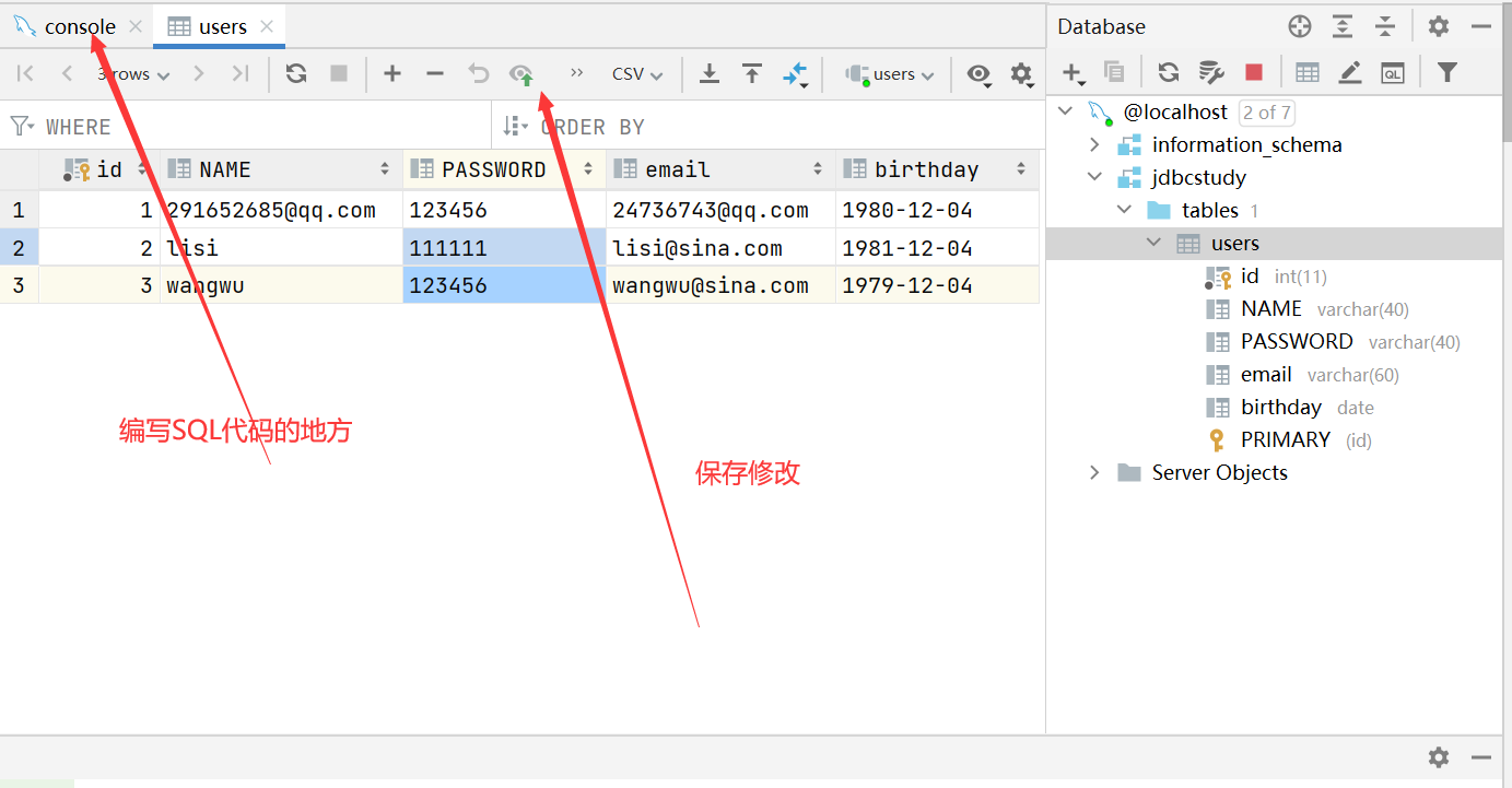 (2,'lisi','123456','lisi@sina.com','1981-12-04'),