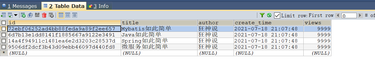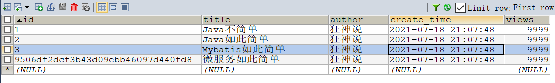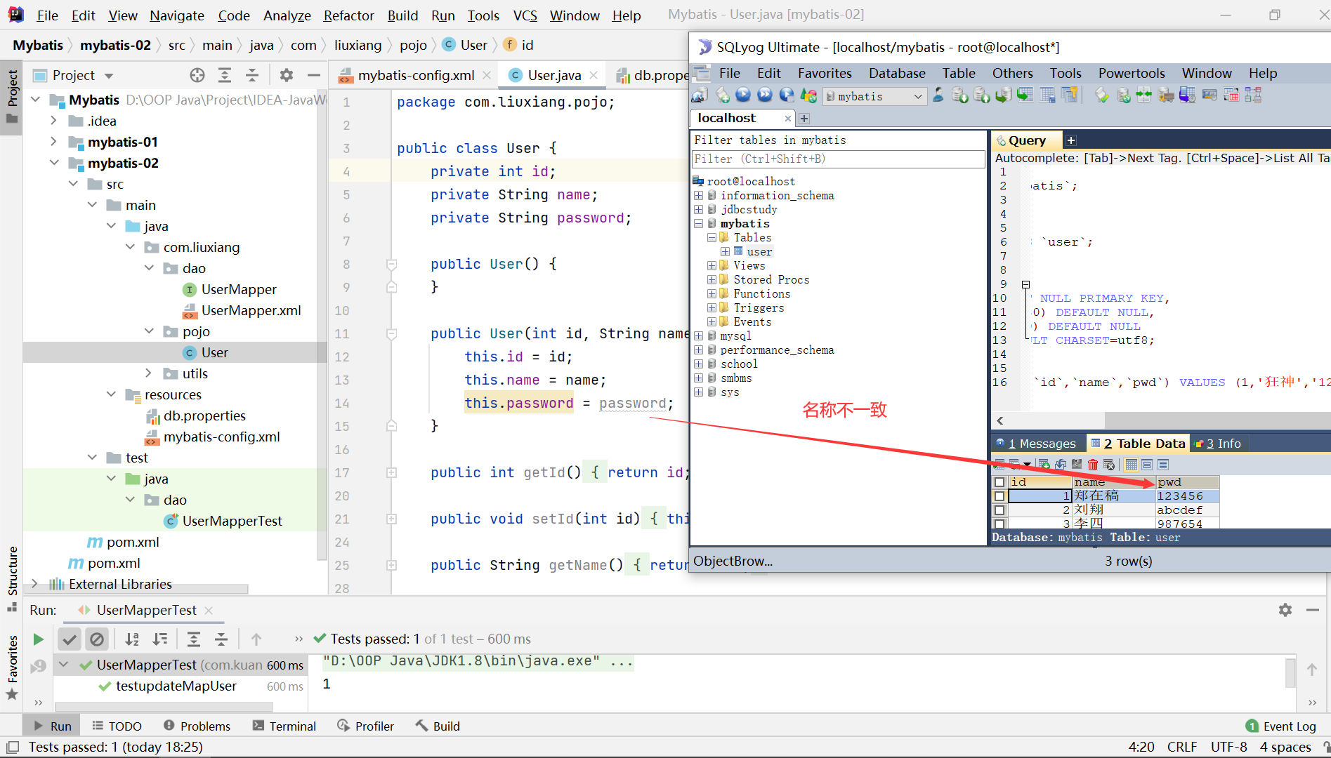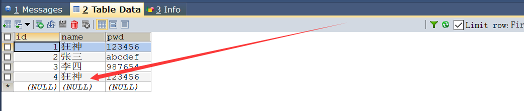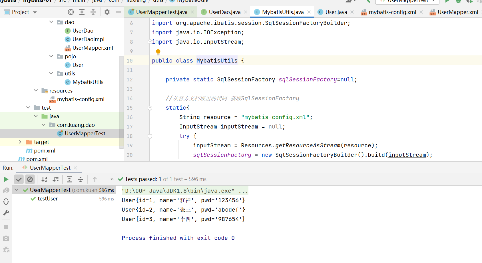 INSERT INTO `user`(`id`,`name`,`pwd`) VALUES (1,'狂神','123456'),(2,'张三','abcdef'),(3,'李四','987654');`mybatis`