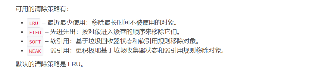 <!--创建了一个 FIFO 缓存 每隔 60 秒刷新 最多可以存储结果对象或列表的 512 个引用 而且返回的对象被认为是只读的-->