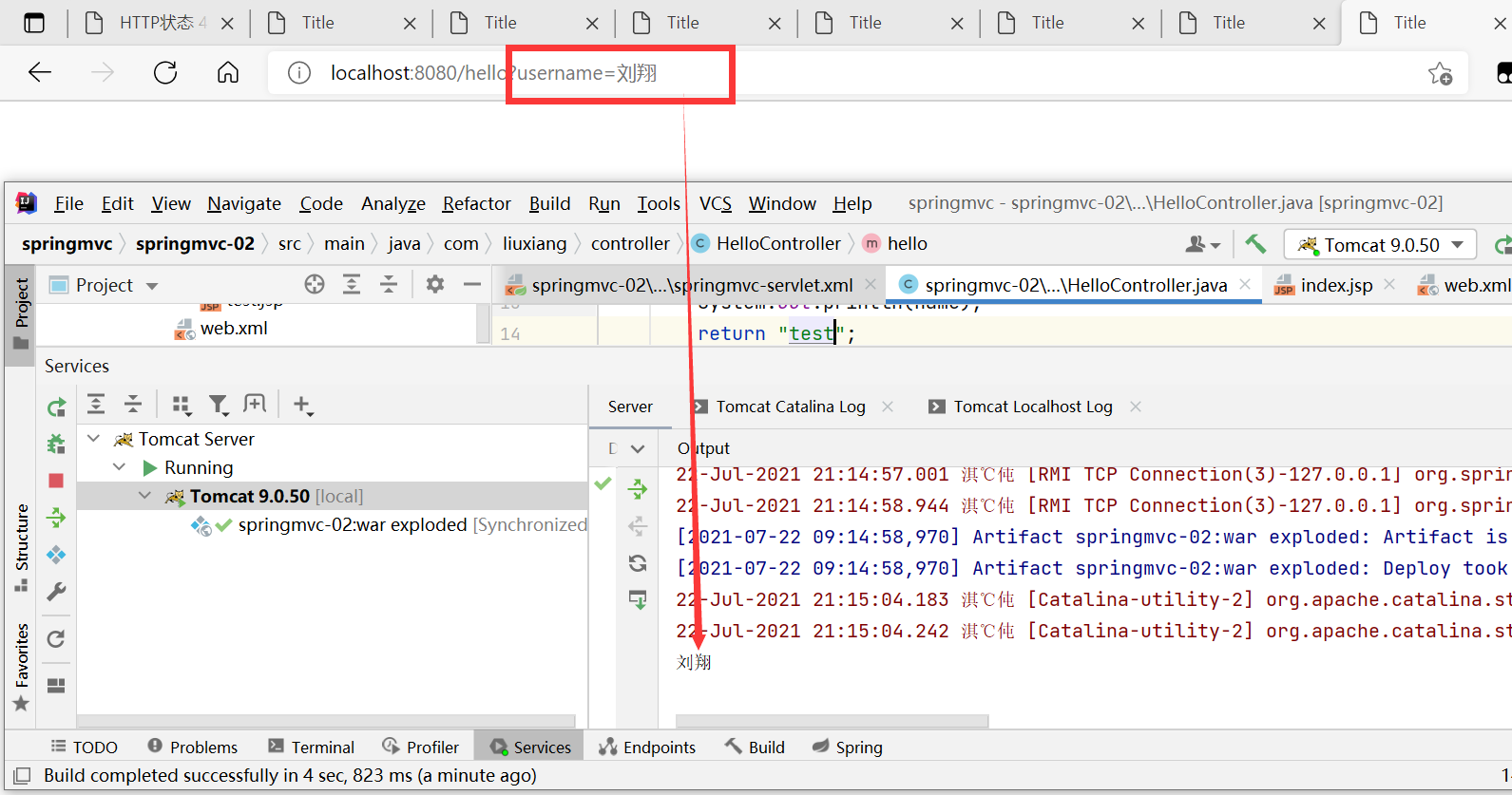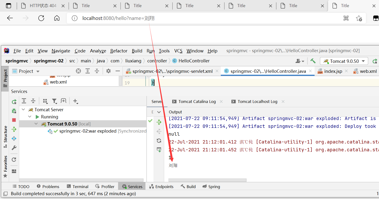 - 通过分析,如上url表示为:请求位于服务器localhost:8080上的SpringMVC站点的hello控制器