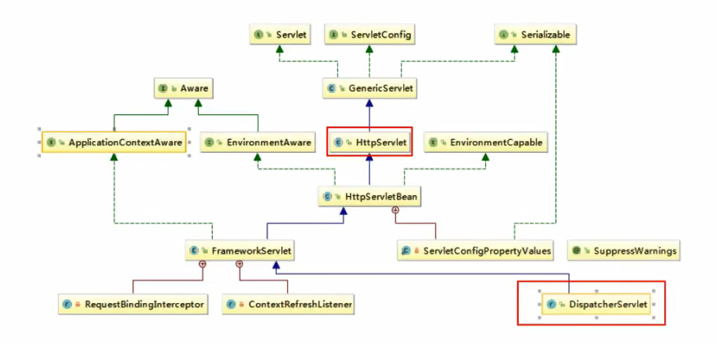Spring MVC框架像许多其他MVC框架一样,以请求为驱动 , 围绕一个中心Servlet分派请求及提供其他功能,DispatcherServlet是一个实际的Servlet (它继承自HttpServlet 基类)。