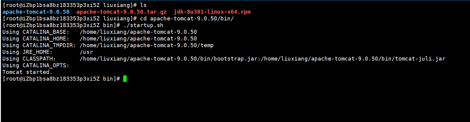 cd apache-tomcat-9.0.50/bin/ #进入tomcat/bin目录
