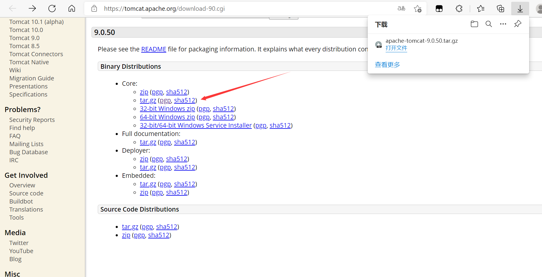 - 下载和上传 tomcat tar 安装包,[点击下载](Apache Tomcat® - Apache Tomcat 9 Software Downloads)