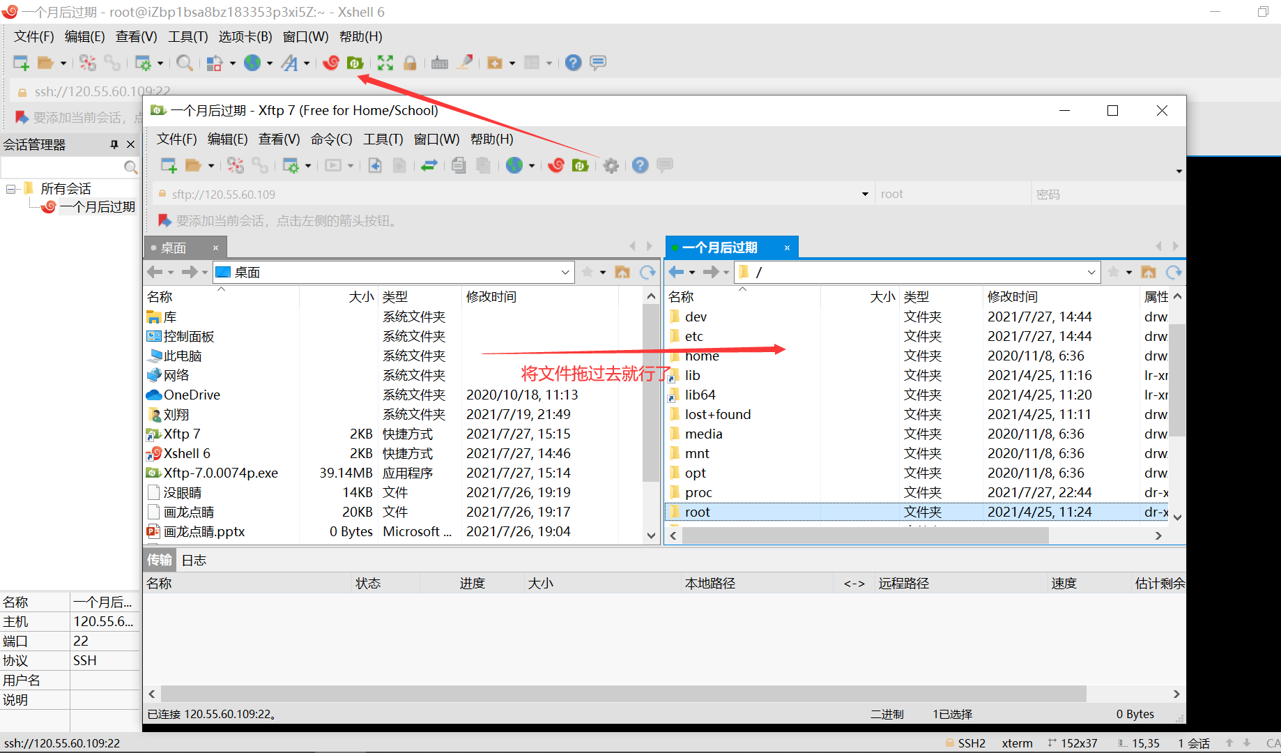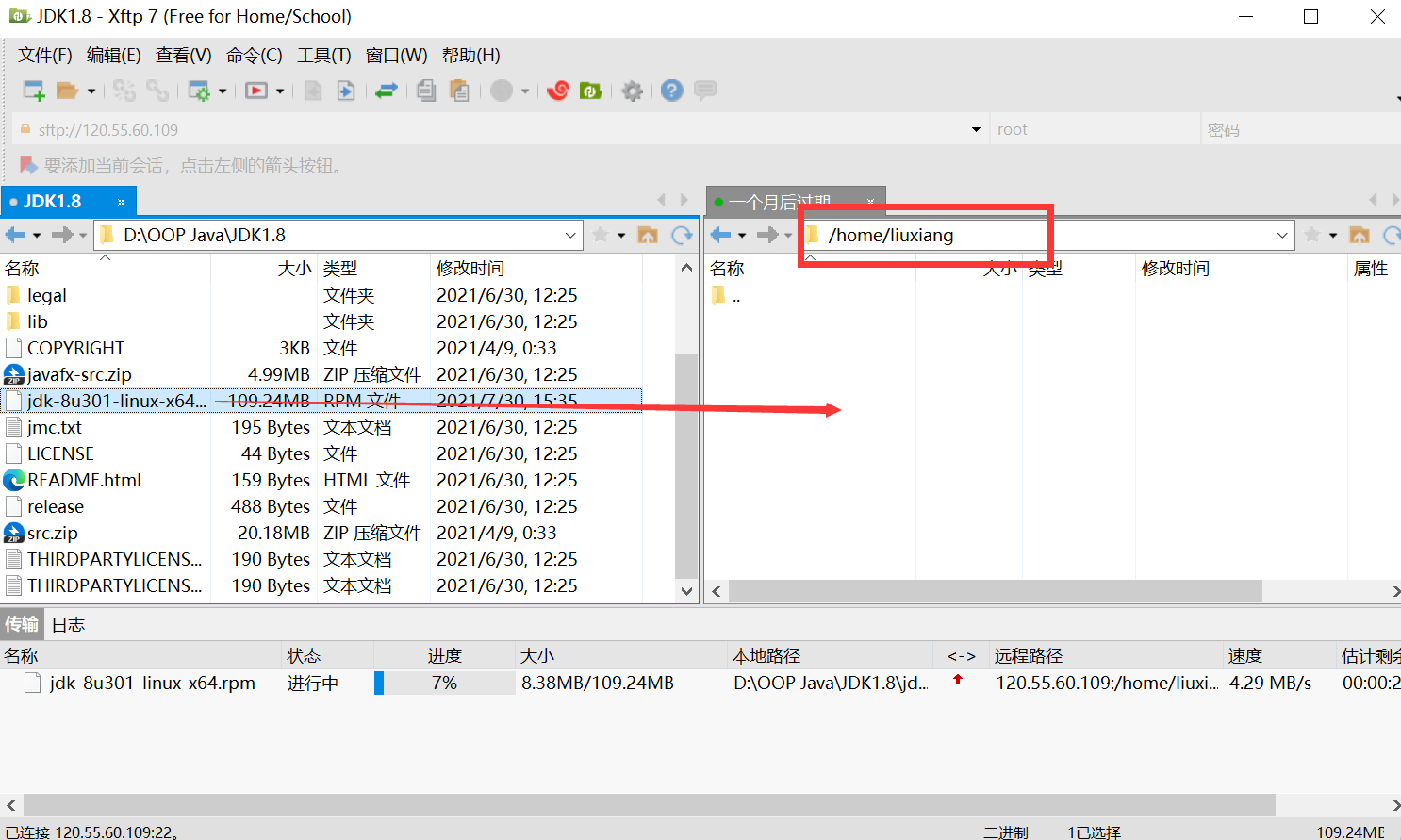 - 下载 xftp 上传文件工具,进行文件上传到服务器。