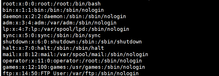 从左到右对应:用户名:口令(密码):用户标识号:组标识号:注释性描述:主目录:登录Shell