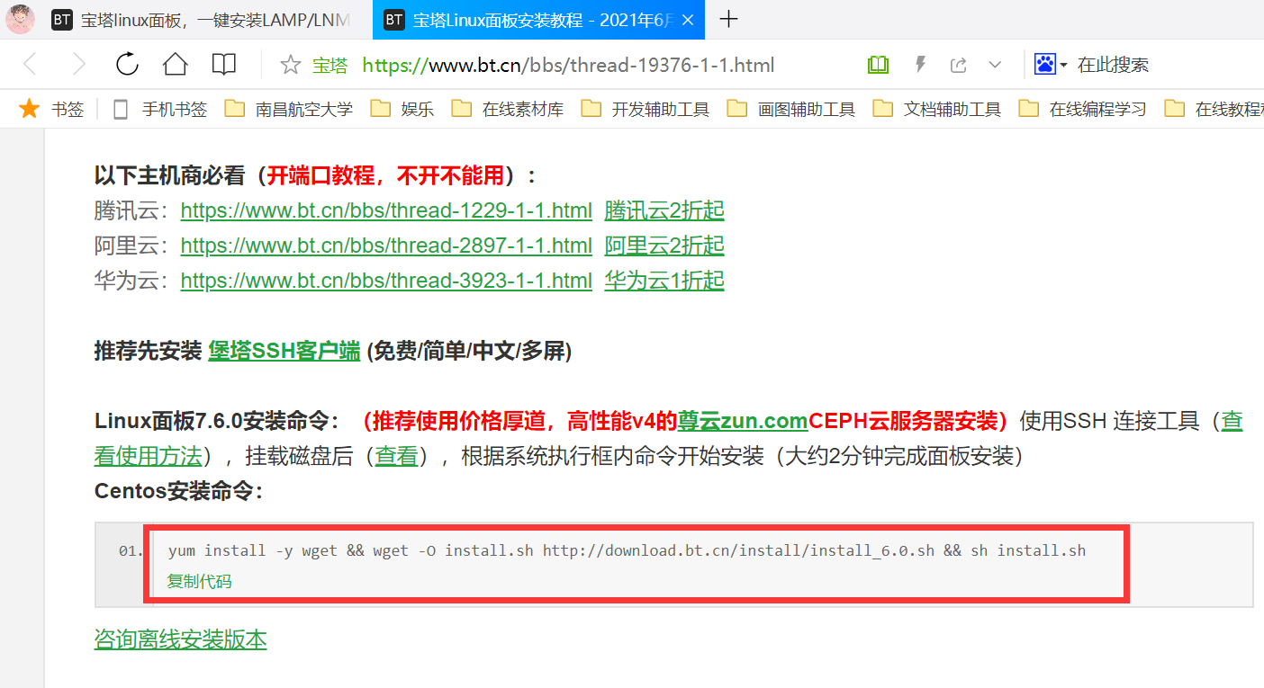yum install -y wget && wget -O install.sh http://download.bt.cn/install/install_6.0.sh && sh install.sh
