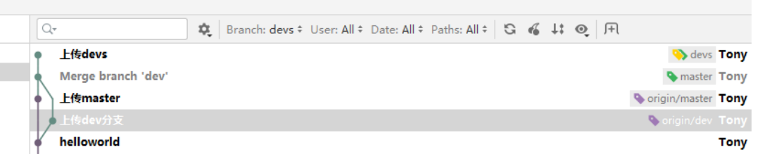 master主分支应该非常稳定,用来发布新版本,一般情况下不允许在上面工作,工作一般情况下在新建的dev分支上工作,工作完后,比如上要发布,或者说dev分支代码稳定后可以合并到主分支master上来。