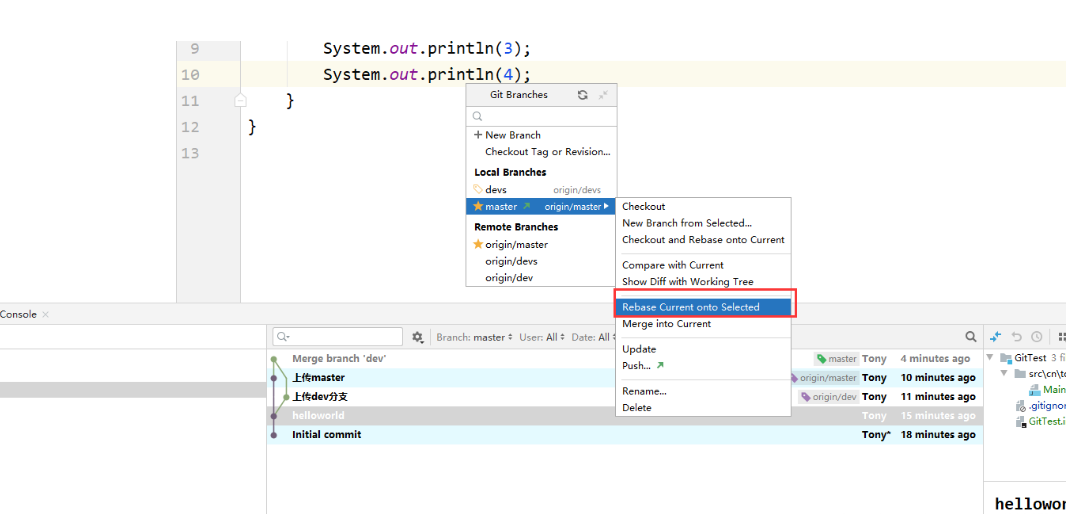 - 使用rebase合并分支