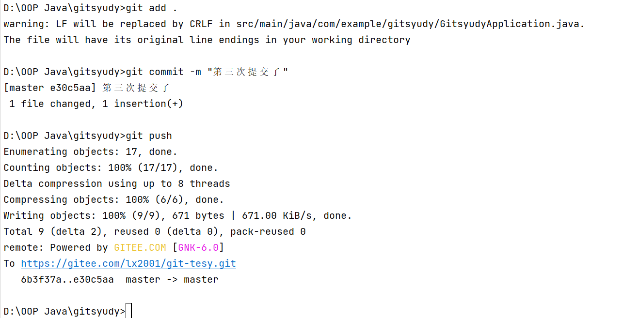 - 提交到远程仓库,IEAD中命令输入