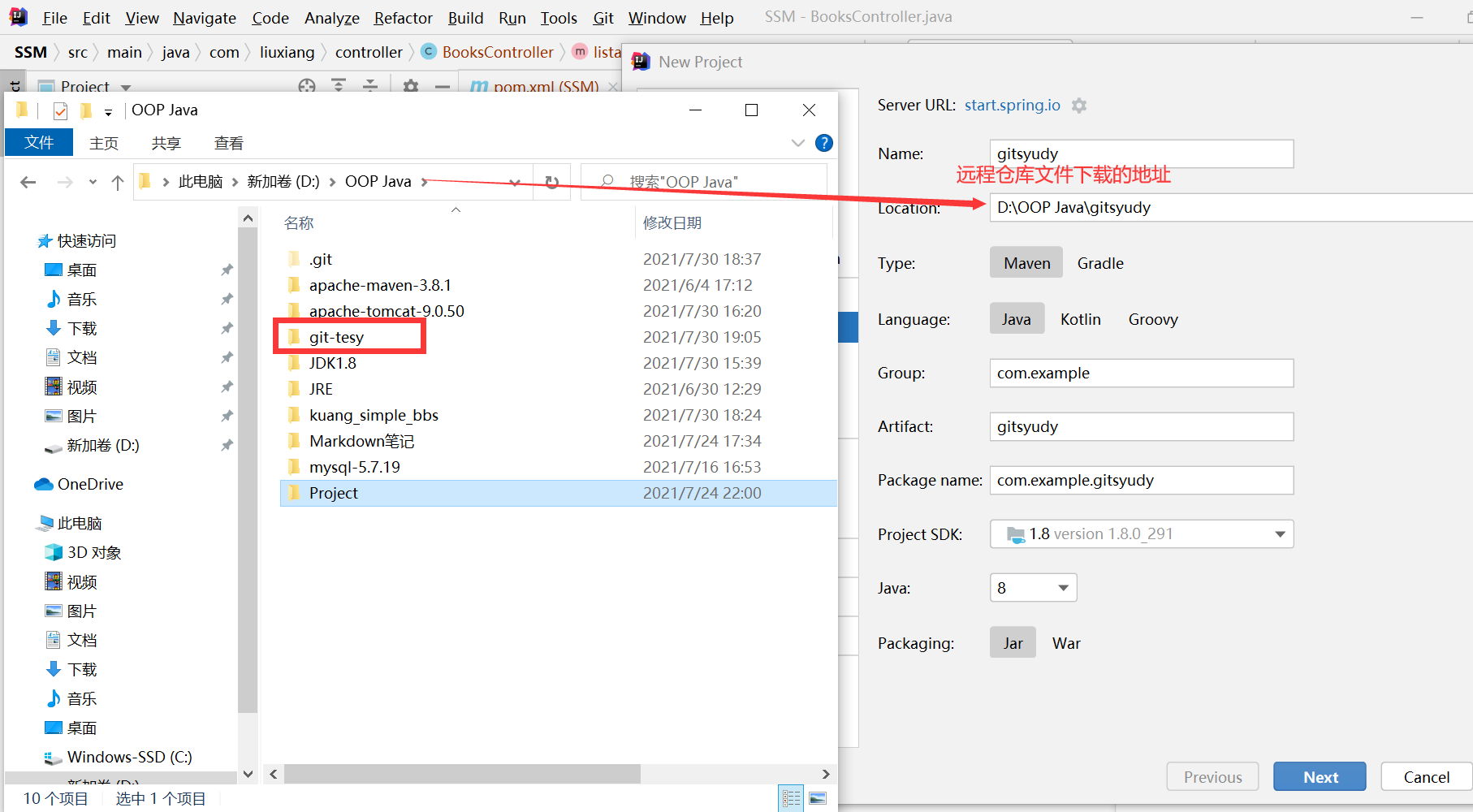 - 在IDEA中创建一个新项目,并将远程克隆的文件复制粘贴进项目中