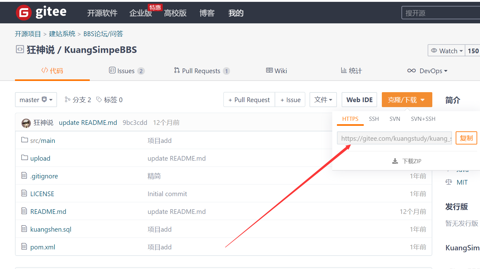git clone https://gitee.com/kuangstudy/kuang_simple_bbs.git