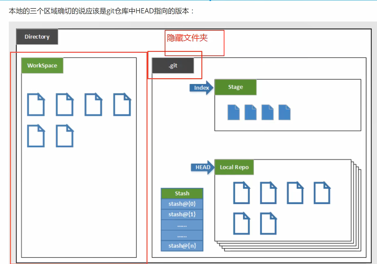 本地的三个区域确切的说应该是 git 仓库中 HEAD 指向的版本: