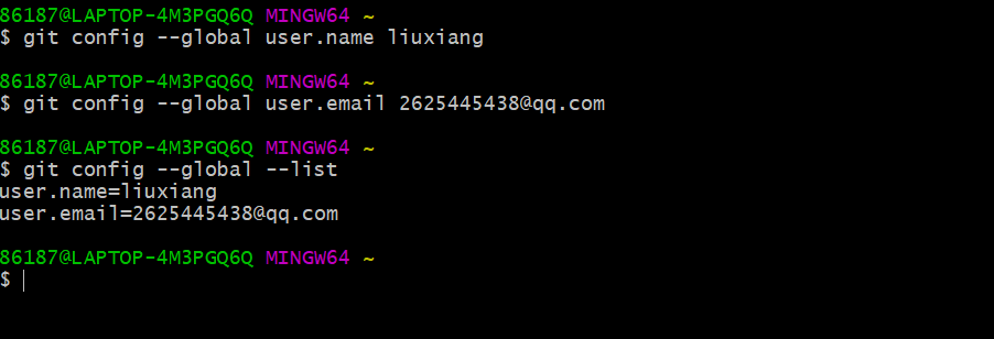 git config --global user.name liuxiang #设置用户名