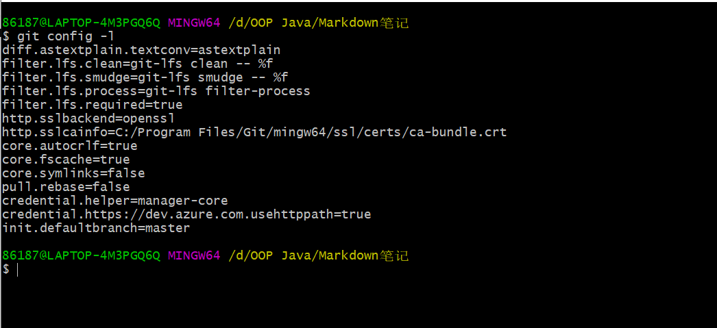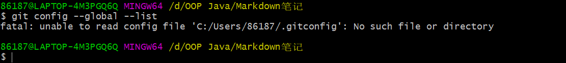 当前用户配置为空,可以通过以下命令设置: