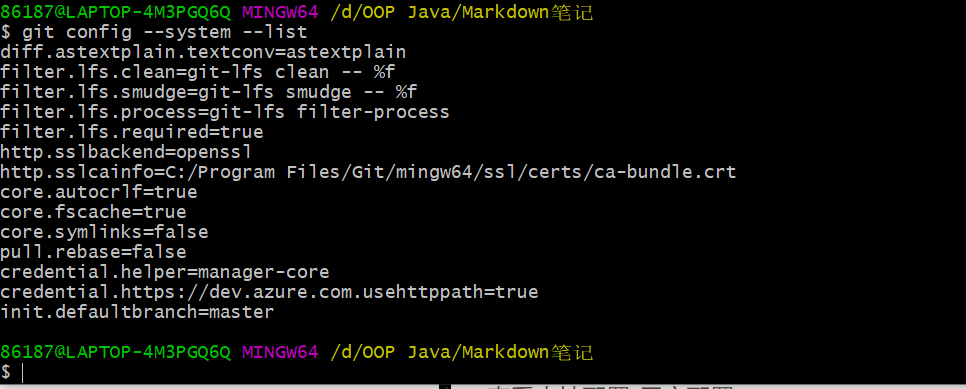 - Git\mingw64\etc\gitconfig:Git安装目录下的 gitconfig,