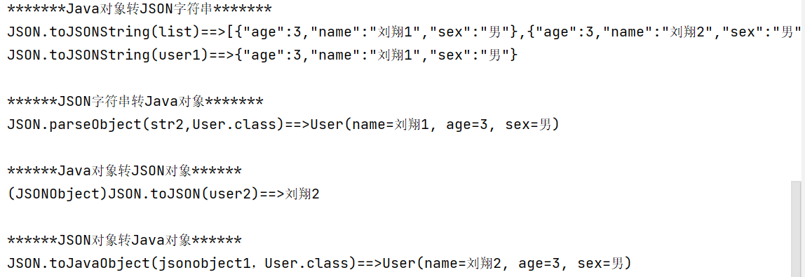 System.out.println("JSON.toJavaObject(jsonobject1,User.class)==>"+to_java_user);