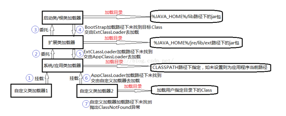 - 应用程序类加载器(Application ClassLoader):负责加载用户路径(classpath)上的类库。JVM 通过双亲委派模型进行类的加载,当然我们也可以通过继承 java.lang.ClassLoader 实现自定义的类加载器。