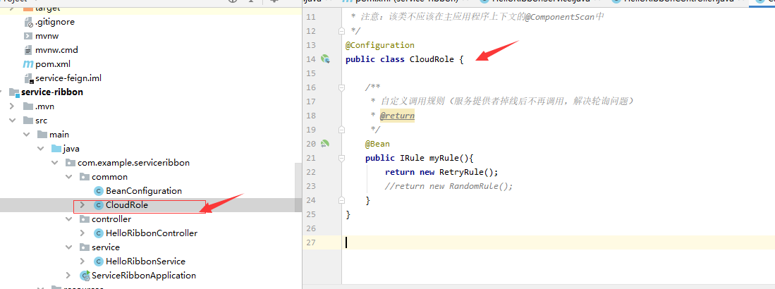 @RibbonClient(name = "service-ribbon", configuration = CloudRole.class)