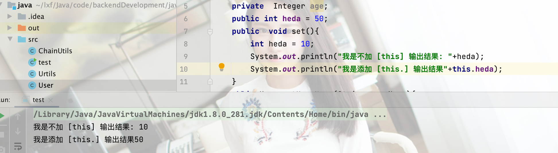 System.out.println("我是添加 [this.] 输出结果"+this.heda);