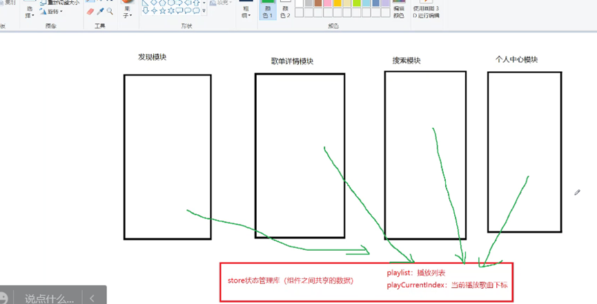 在state中创建一个playlist音乐播放列表,默认播放playCurrentIndex:0下标为0(第一条数据)