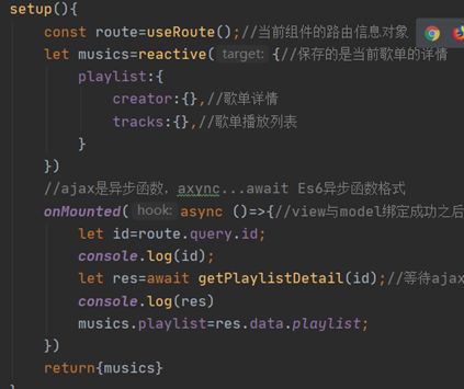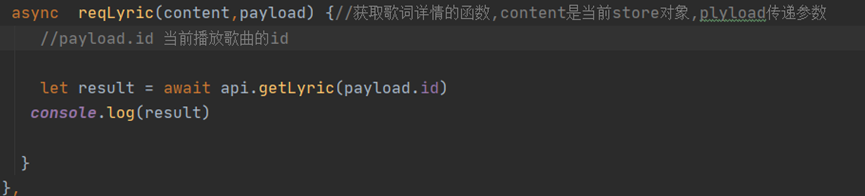 由于用到了await异步处理,所以加上了async,这里的let就是获取到的歌词数据