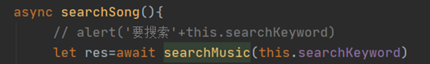 3、编写searchSong函数,发送ajax请求,传递参数searchKeyword