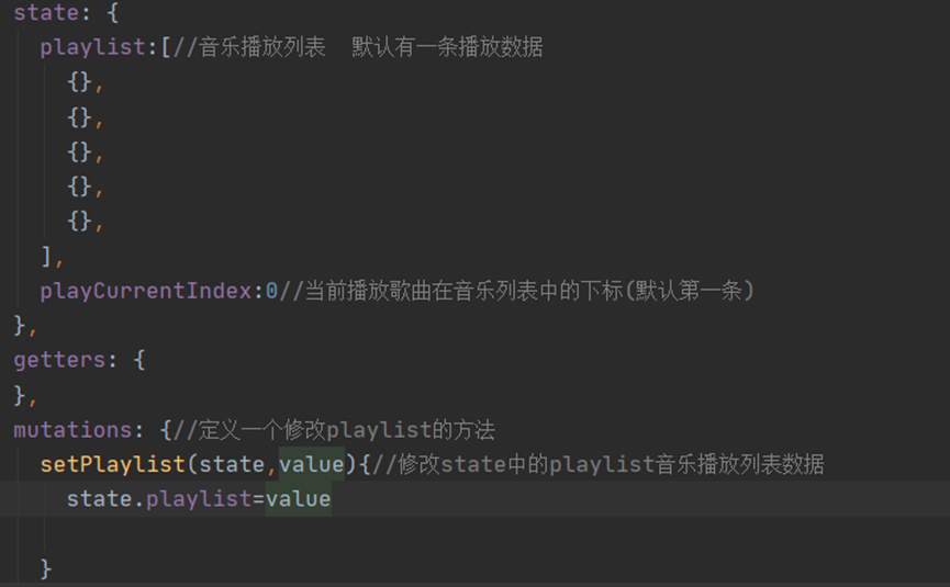 在mutations中定义一个函数来修改state中的playlist音乐播放列表数据