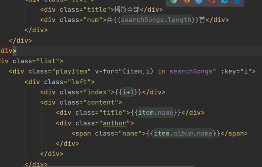 4、接收ajax返回的歌曲列表,将它v-for循环渲染到页面上