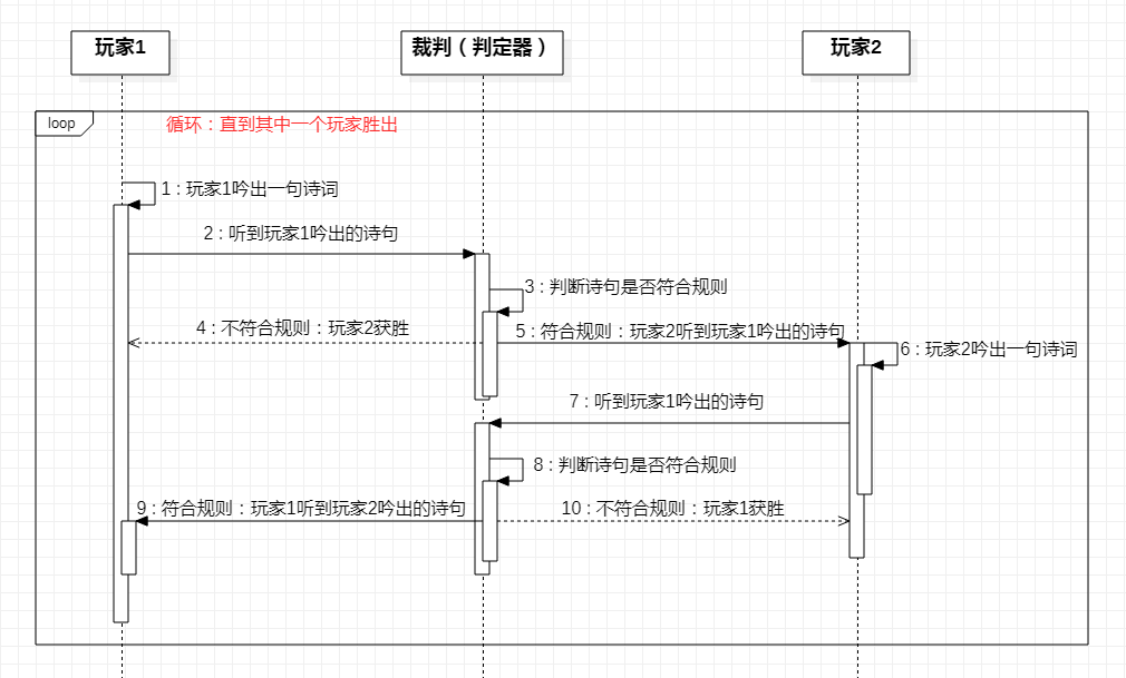 2、双人“飞花令”游戏过程顺序图