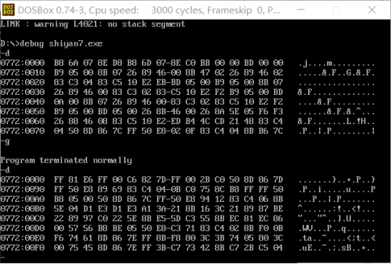 记录此时:寄存器(DS) = __076A__, 寄存器(SS) = __076C__, 寄存器(CS) = __076E__