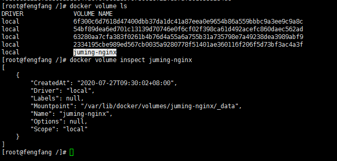 docker volume inspect juming-nginx #查看具名的挂载路径