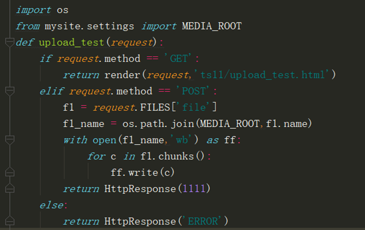 Django在处理上传的时候,文件数据被保存在了request,FILES,FILES中的每个键为<input type=“file” name=""/>中的name